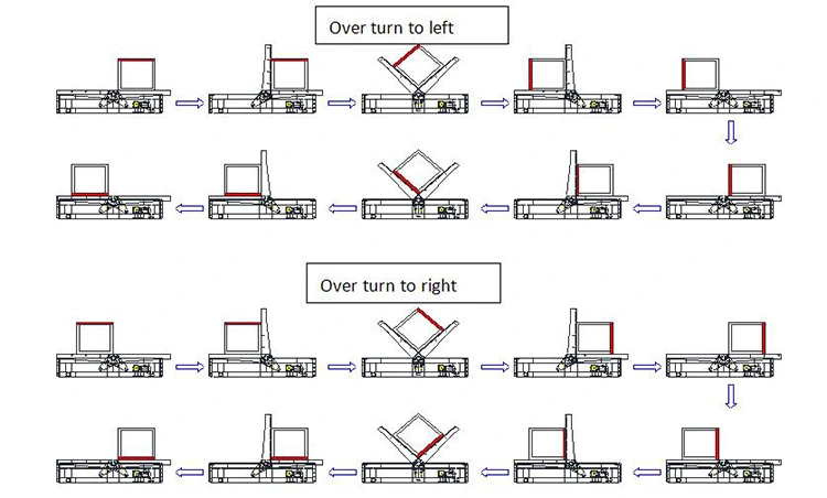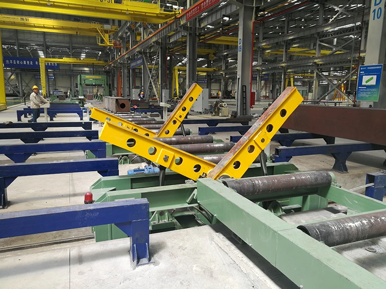 Δύο υπολογιστές κινητών πτερυγίων υδραυλικών δοκών 180 ° παρέχονται σε κάθε σετ, που χρησιμοποιούνται κυρίως για την περιστροφή τεμαχίων μετά τη συγκόλληση από τη μία πλευρά. Όταν εργάζεστε, σηκώστε το τεμάχιο μακριά από το τραπέζι κυλίνδρων ή το ράφι του τεμαχίου και ο μειωτής οδηγεί τα δύο ανατροπικά βραχίονα για να μετακινηθείτε συγχρόνως για να μετακινήσετε το τεμάχιο στο πλάι του τραπεζιού κυλίνδρου ή στο ράφι του τεμαχίου. Στη συνέχεια, δύο υδραυλικοί κύλινδροι οδηγούν τους δύο βραχίονες σε σχήμα L για να περιστρέφονται συγχρόνως. Αφού ανατραπεί το τεμάχιο, μεταφέρεται στη μέση του τραπεζιού ή στο ράφι του τεμαχίου και στη συνέχεια το τεμάχιο εργασίας μεταφέρεται στην επόμενη διαδικασία ή συγκολλείται.